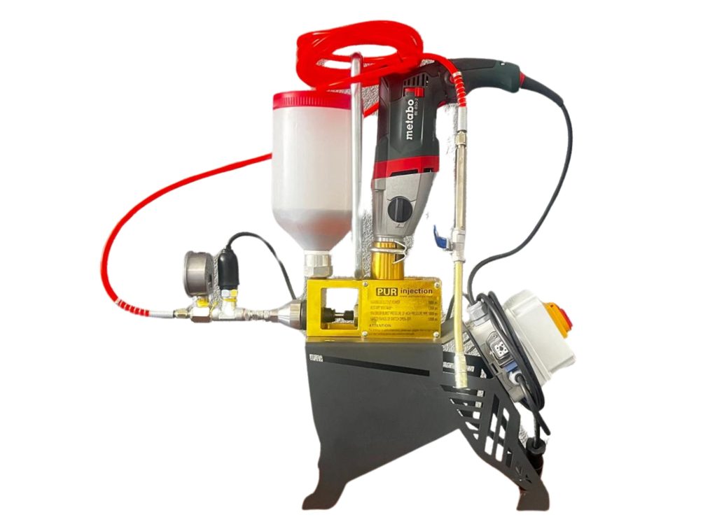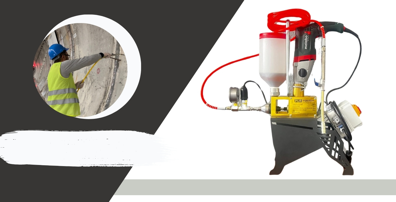 Poliüretan ve epoksi bazlı kimyasalların betonlarda su izolasyonu, güçlendirme ve onarımı için geliştirilmiş yüksek dayanımlı ve sensörlü enjeksiyon makinesi.